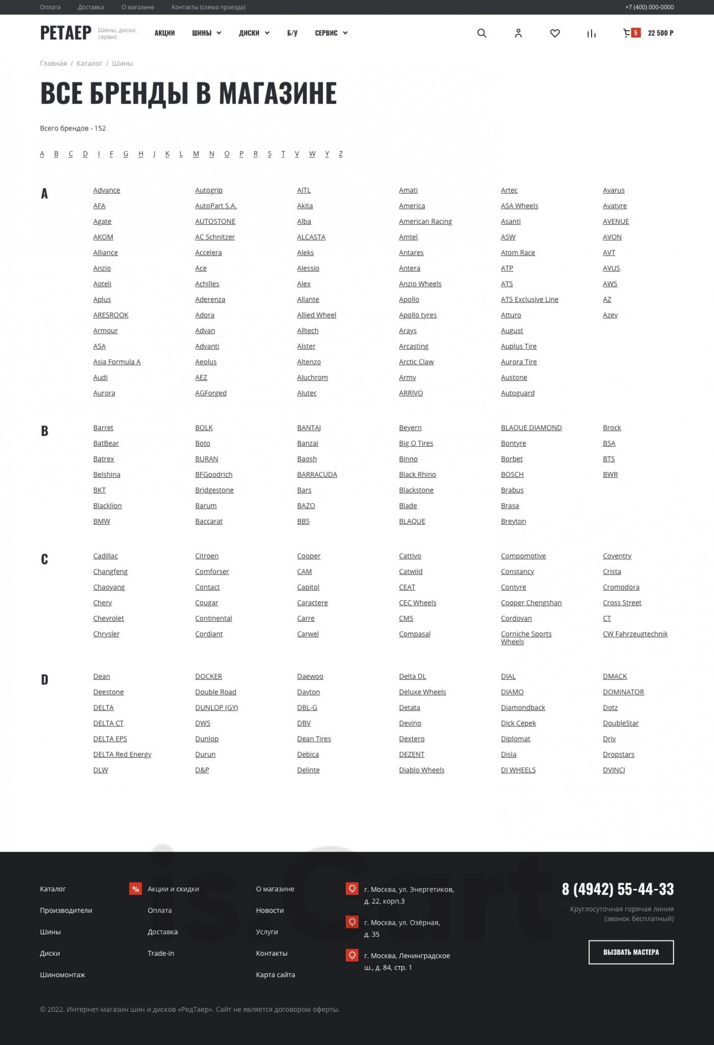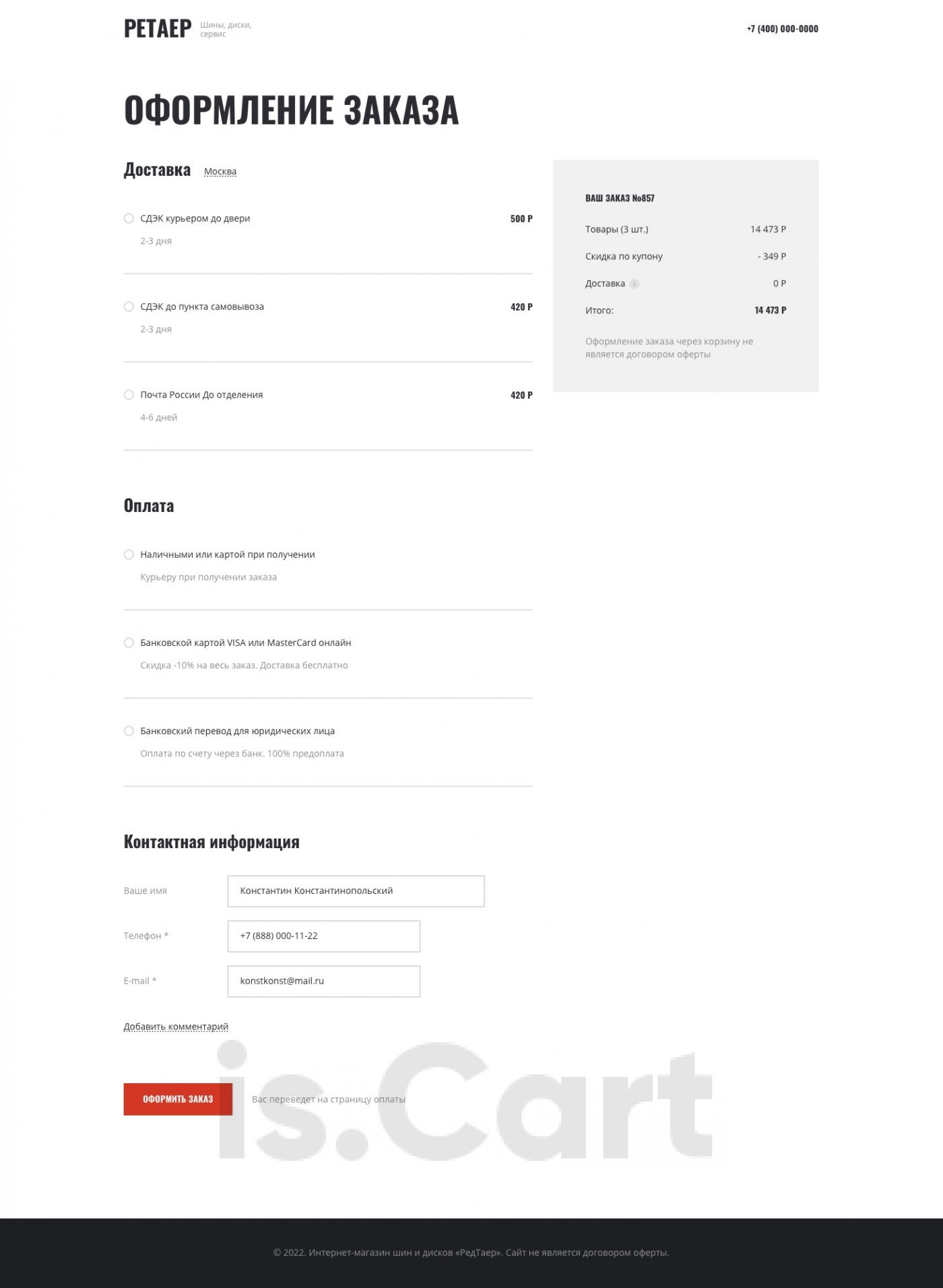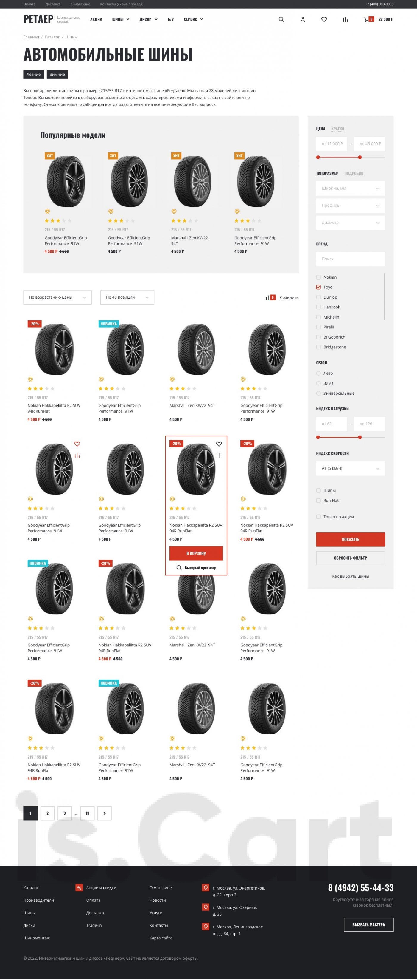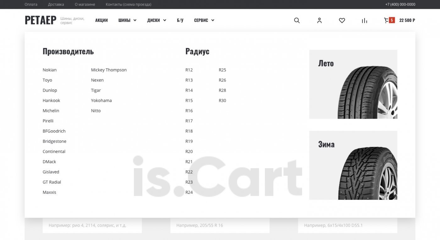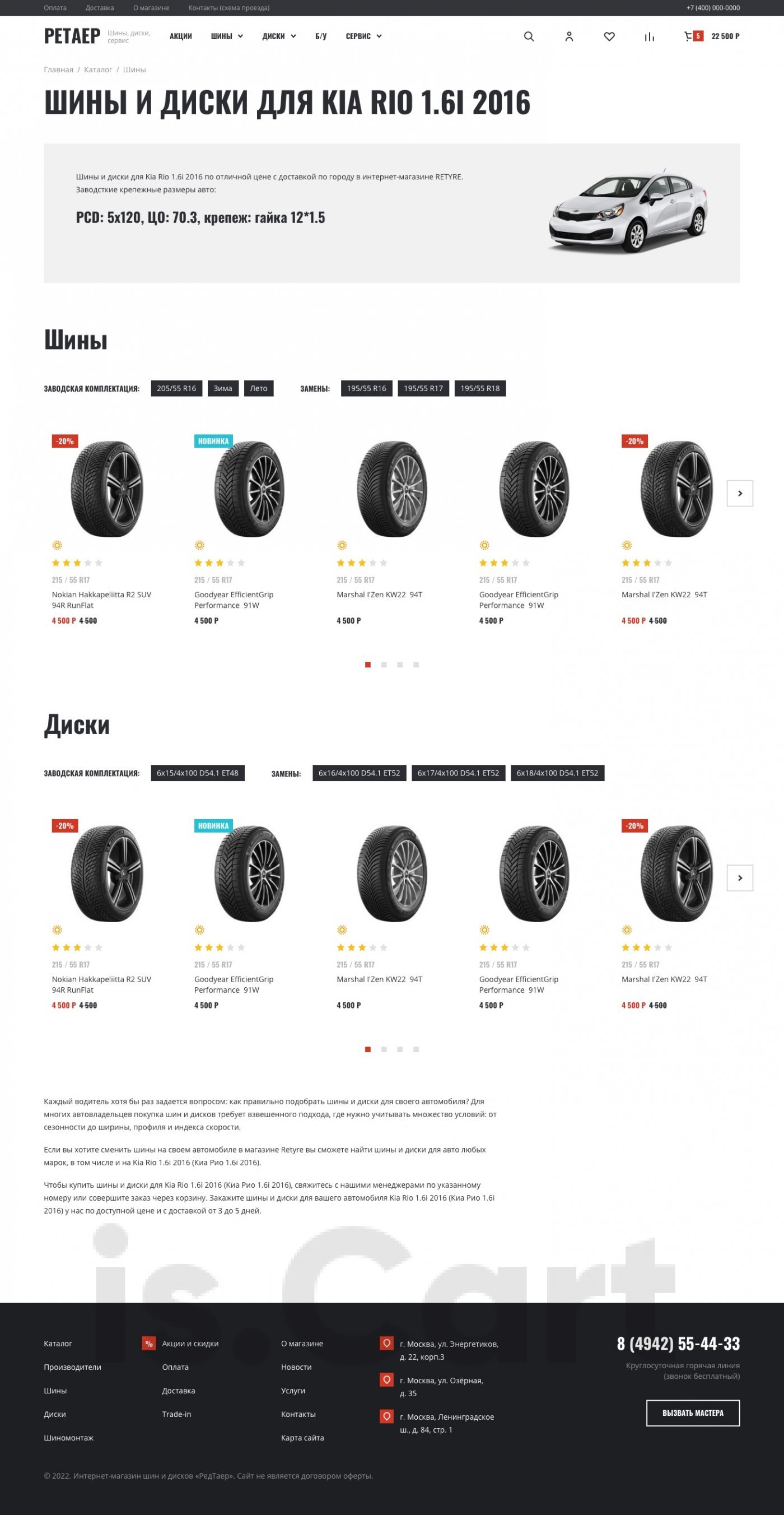 Готовый сайт is.Cart Malastar для продажи шин и дисков
